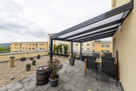 Das Produkt kann um eine Beschattung in Form von Rollos und Jalousien bereichert werden. Gleichzeitig ist es möglich der Konstruktion seitliche Glaswände hinzuzufügen.